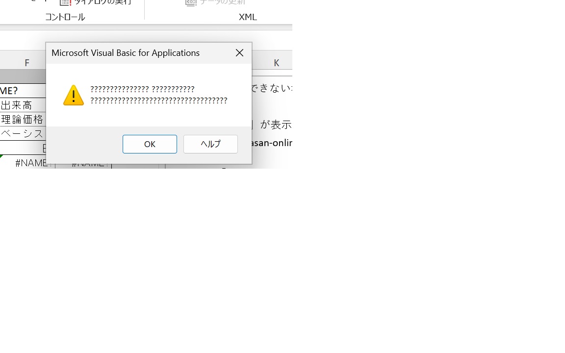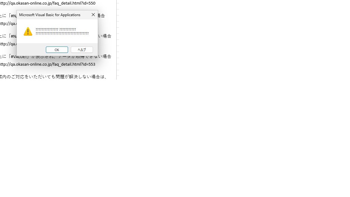 ※以下、"="が全角になっています。 ========================================== Private Sub Workbook_Open() If MsgBox("CANDLEの領域を削除しますか?", vbYesNo + vbQuestion) = vbYes Then Sheets("Sheet1").Range("A1:F39").ClearContents End If End Sub ==========================================