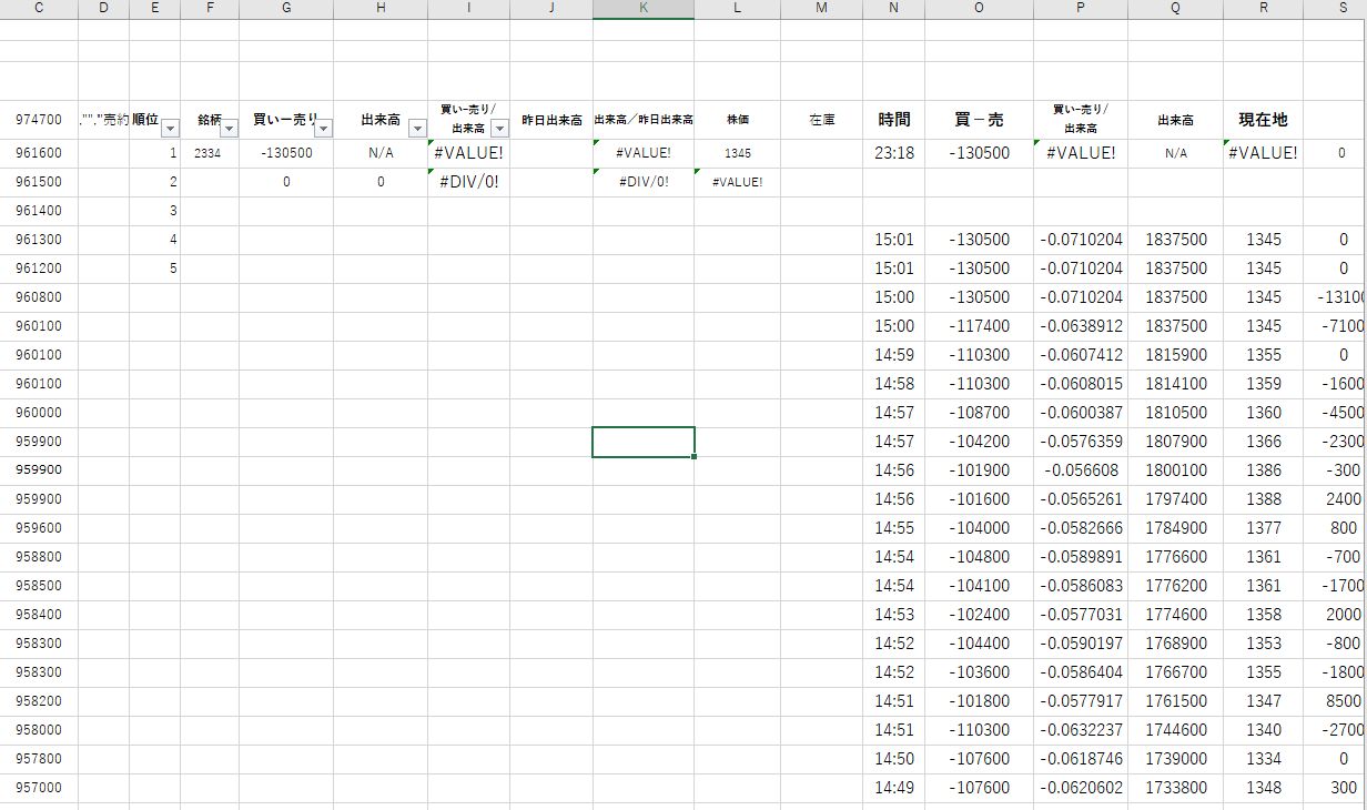 1.寄り成り注文などの判定を・・・ If TimeValue(Now) = TimeValue("16:25") Then から If (TimeValue("16:25") <= TimeValue(Now)) And (TimeValue(Now) <= TimeValue("16:26")) Then のように幅を持たせる