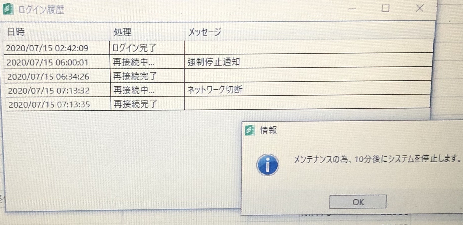 Sub 保有情報取得関数OPPOS1TI0Nに表示される評価損益額を使ったOCO注文() If Cells(1, 15) <> "" Then MsgBox "決済発注判定を修了します。" Exit Sub End If Call 決済発注判定 反復時刻 = TimeValue(Now) + TimeValue("00:00:01") Application.OnTime 反復時刻, "保有情報取得関数OPPOS1TI0Nに表示される評価損益額を使ったOCO注文" Cells(1, 16) = TimeValue(Now) End Sub