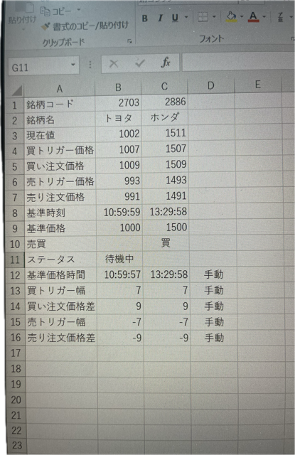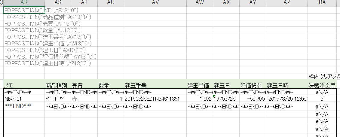 If Cells(i, 12) <> "" And Cells(i, 12) * 1 <= -1000 Or Cells(i, 12) >= 1000 Then 建玉NO = Cells(i, 10) 発注ID = Now() If Cells(i, 5) = "買" Then Call 決済売(建玉NO, 発注ID) Else Call 決済買(建玉NO, 発注ID) End If End If Next End Sub Sub 決済売(建玉NO As String, 発注ID As String) Dim Rs As String ’追加