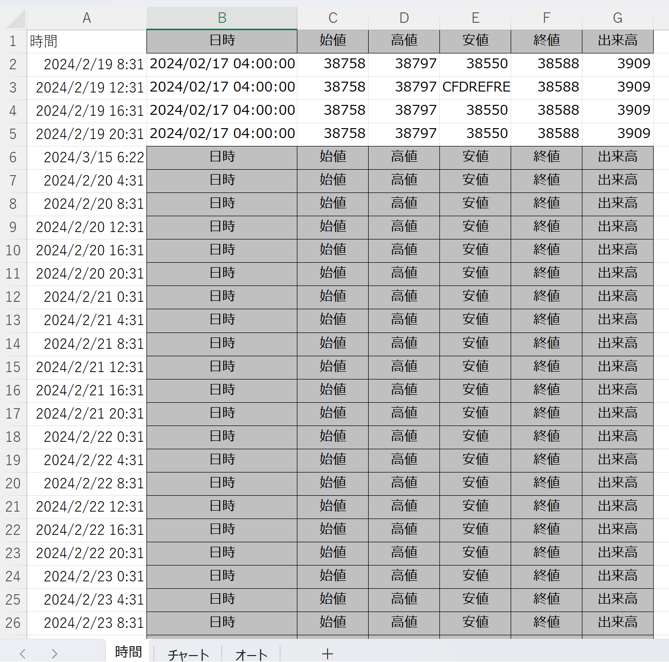 'データ成型後取り込み Private Sub CommandButton1_Click() Dim RowIdx As Integer Dim OHLCIdx As Integer