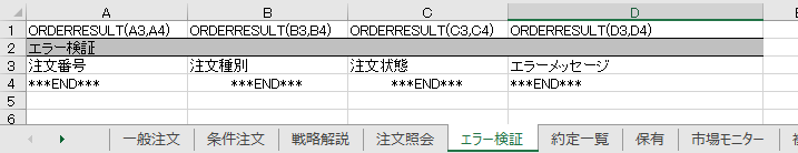 '拡張した発注待機関数 Public Sub MARGINORDER_EX(BrandCD As String, _ MarketCD As String, _ SalesType As String, _ ExecutiveCondition As String, _ OrderPrice As String, _ OrderAmmaunt As String, _ DurationType As String, _ Duration As String, _ AccountType As String, _ NoCommitConfirm As String, _ NoShowOrderWindow As String, _ Password As String, _ OrderCode As String, _ ExecutiveCondirionRev As String, _ OrderPriceRev As String, _ NoConfirm As String, _ NoShowWarning As String, _ MarginTradingType As String, _ DisplayArea As String, _ TargetArea As Range)