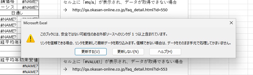 このため、どこかのセルに"=FXREFRESH()"を記述していただき、そのセルを再計算させる必要があります