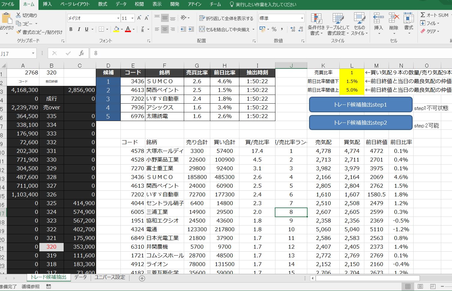 トレード候補抽出step2 の抽出が不可になってしまいます。