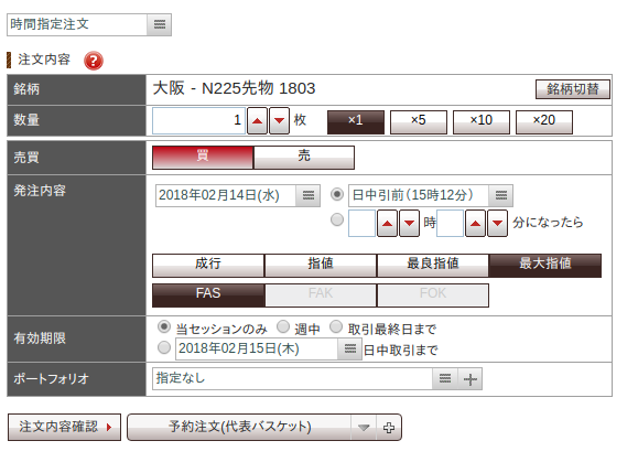 第15引数(有効期間区分)を1(もしくは省略)すると当セッションのみの注文となります!!